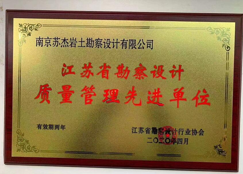 江蘇省勘察設(shè)計(jì)質(zhì)量管理先進(jìn)單位